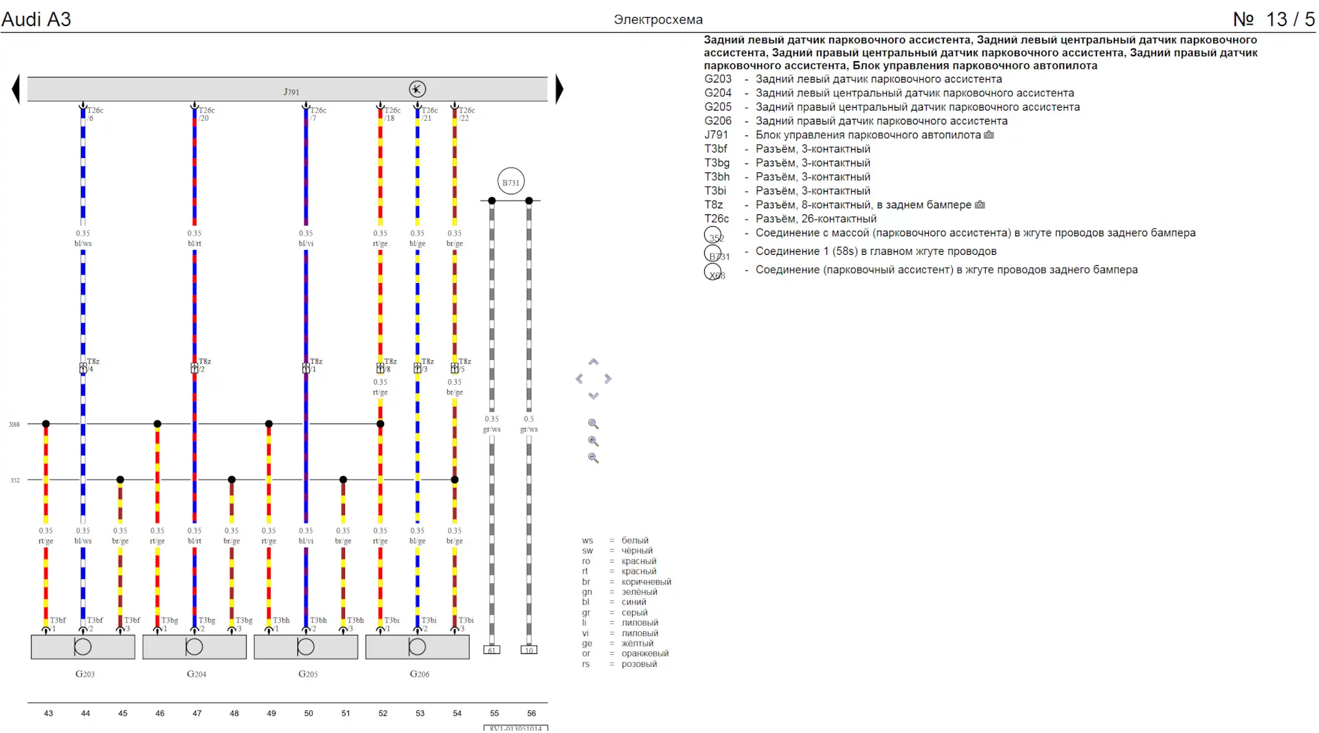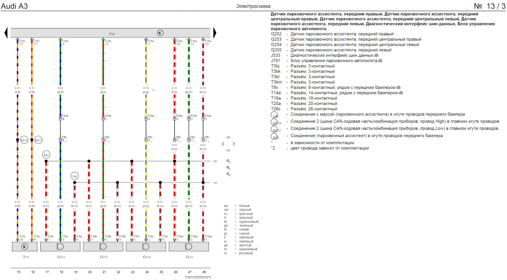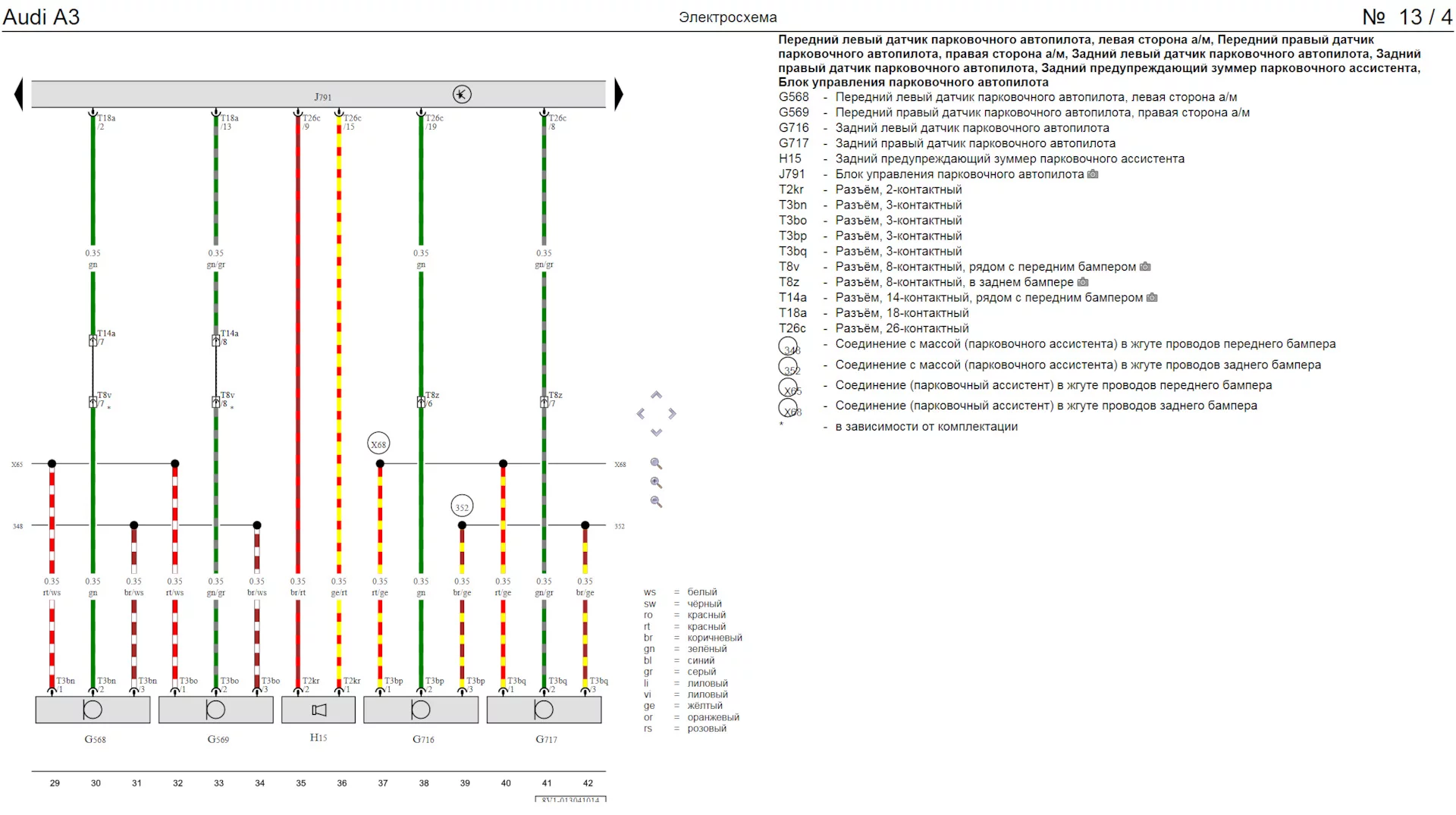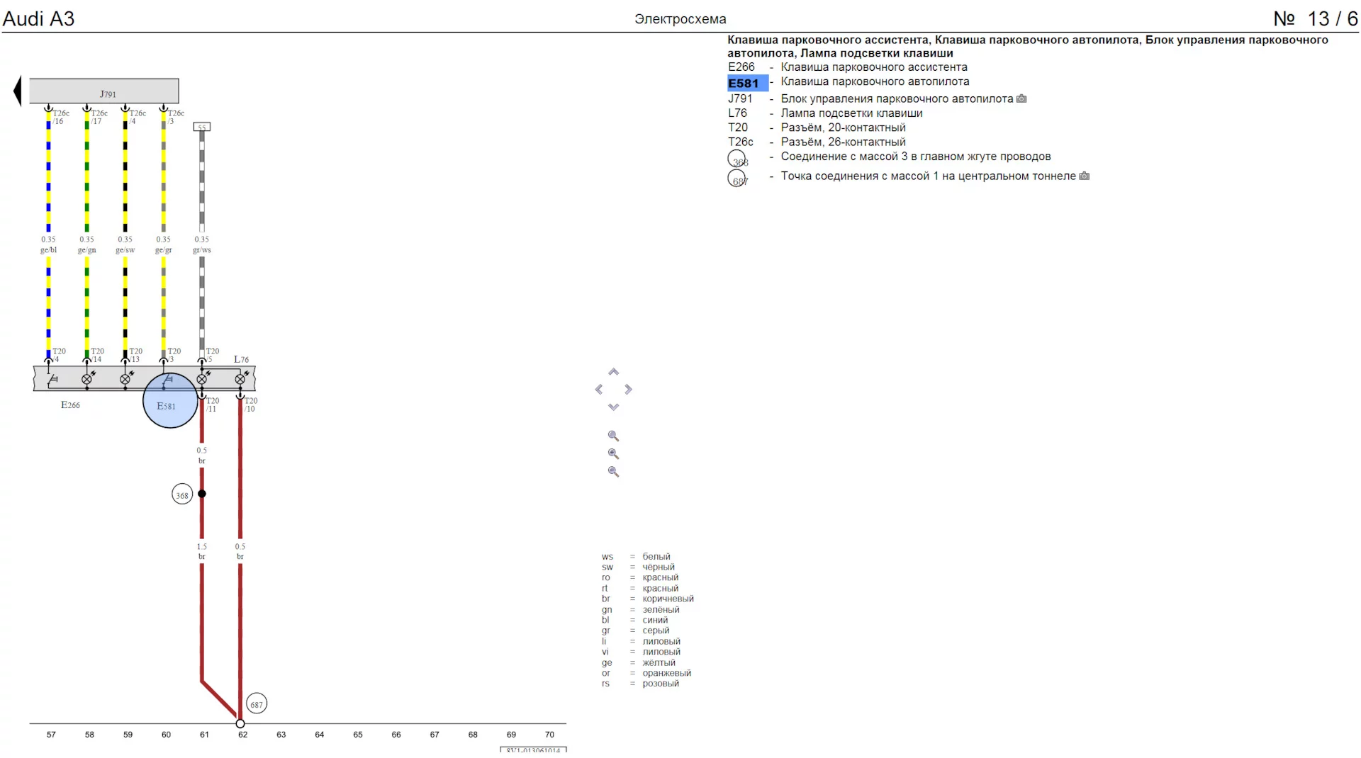 To activate the parking assist you need to run two more wires from the PLA unit to the button in the “piano” keyboard in the center of the dashboard: Т26с/3 → Т20/3, and Т26с/4 → Т20/13.