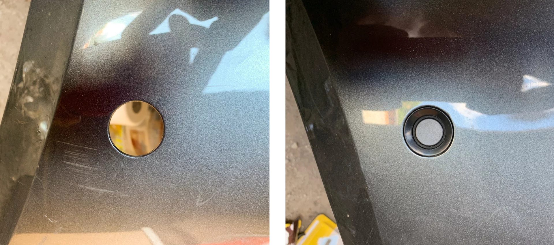 After the cutting, I brought both bumpers to the paint shop and ordered new sealing rings – the kit from Ali came with the black ones, but a white car needs light gray: