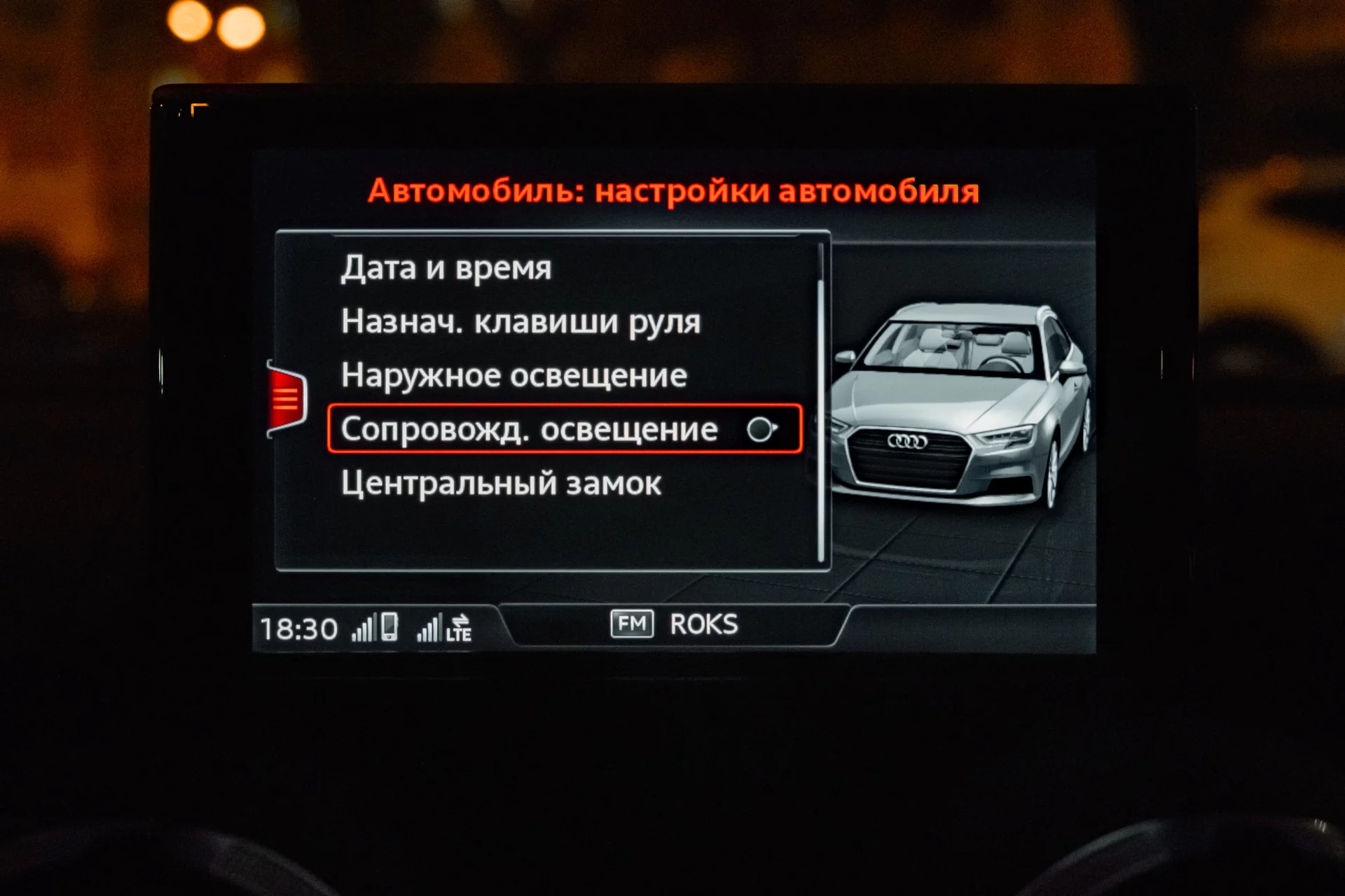 In MIB2 adaptations, activate the menu section for ambient light controls: