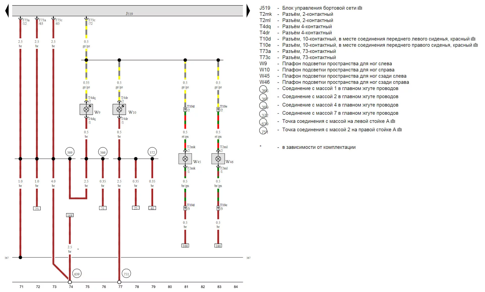 Entry area lights (W84 and W91 on diagram) ― 12th pin of T16 connector