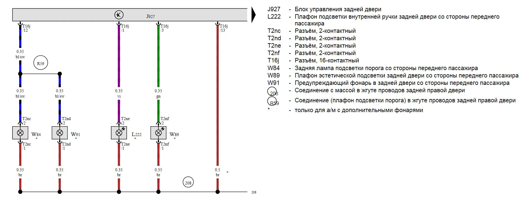 Door trim (W89 on diagram) ― 3rd pin of T16 connector
