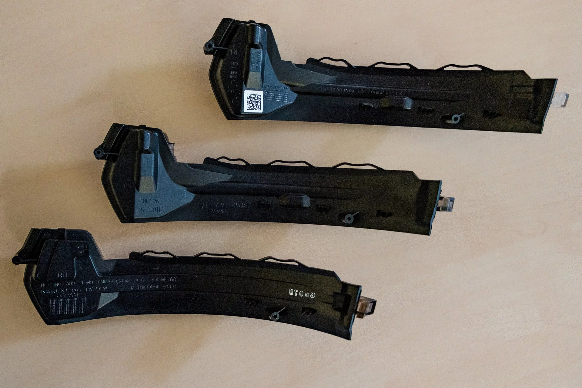 A month ago, I noticed several LEDs died in left turn indicator. They worked for 8 months since purchase, and once again, I vowed to buy any Chinese accessories. I decided to look again for OSRAM LEDdriving DMI and very suprisingly bought them on Allegro for ~50€. And since I needed to disassemble the shells, I also bought a pair of electrochromic mirrors for €140. I needed only the missing right one, but the seller was selling them both. The lot was there for a year, but no one found it because of incorrect partnumbers in the description. ☝️