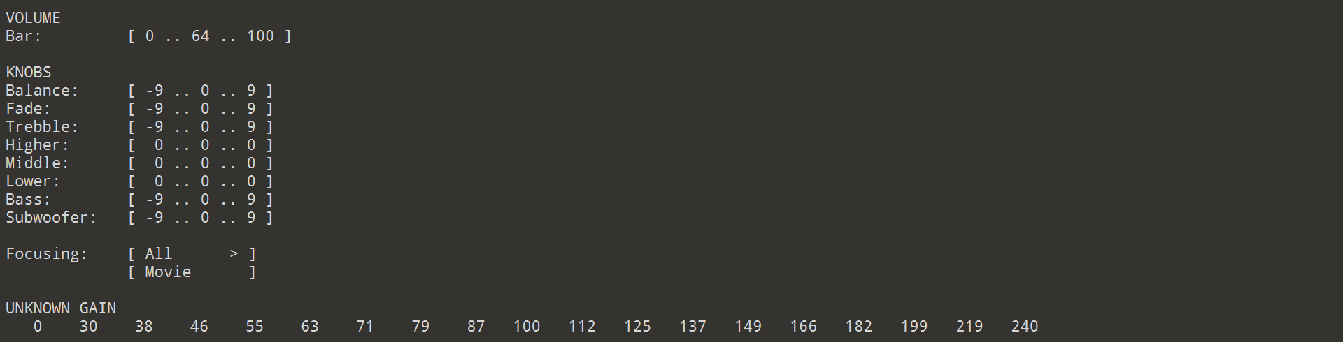 The 31st and 32nd bytes of the 0x003B00 dataset control the names of two profiles available in the “Sound Focusing” drop-down: 00 – hidden, 01 – All, 02 – Driver, 04 – Movie, 08 – Front, 16 – Rear.
