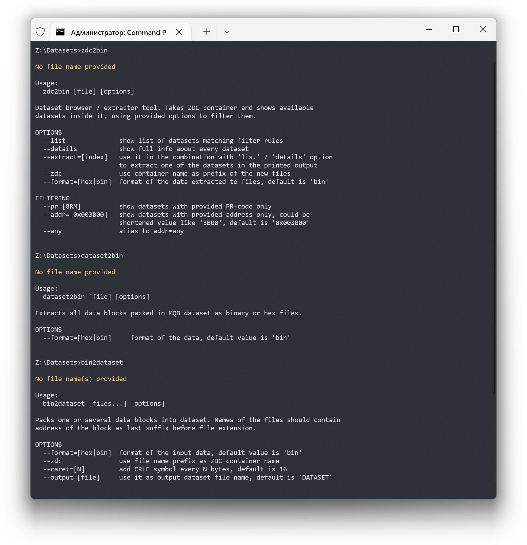 There are 3 command-line tools in the tools/bin folder: to extract .bin from ZDC-containers and single XML-files of ODIS and to create new XMLs out of binaries with automatic checksum calculation. Screenshot examples: