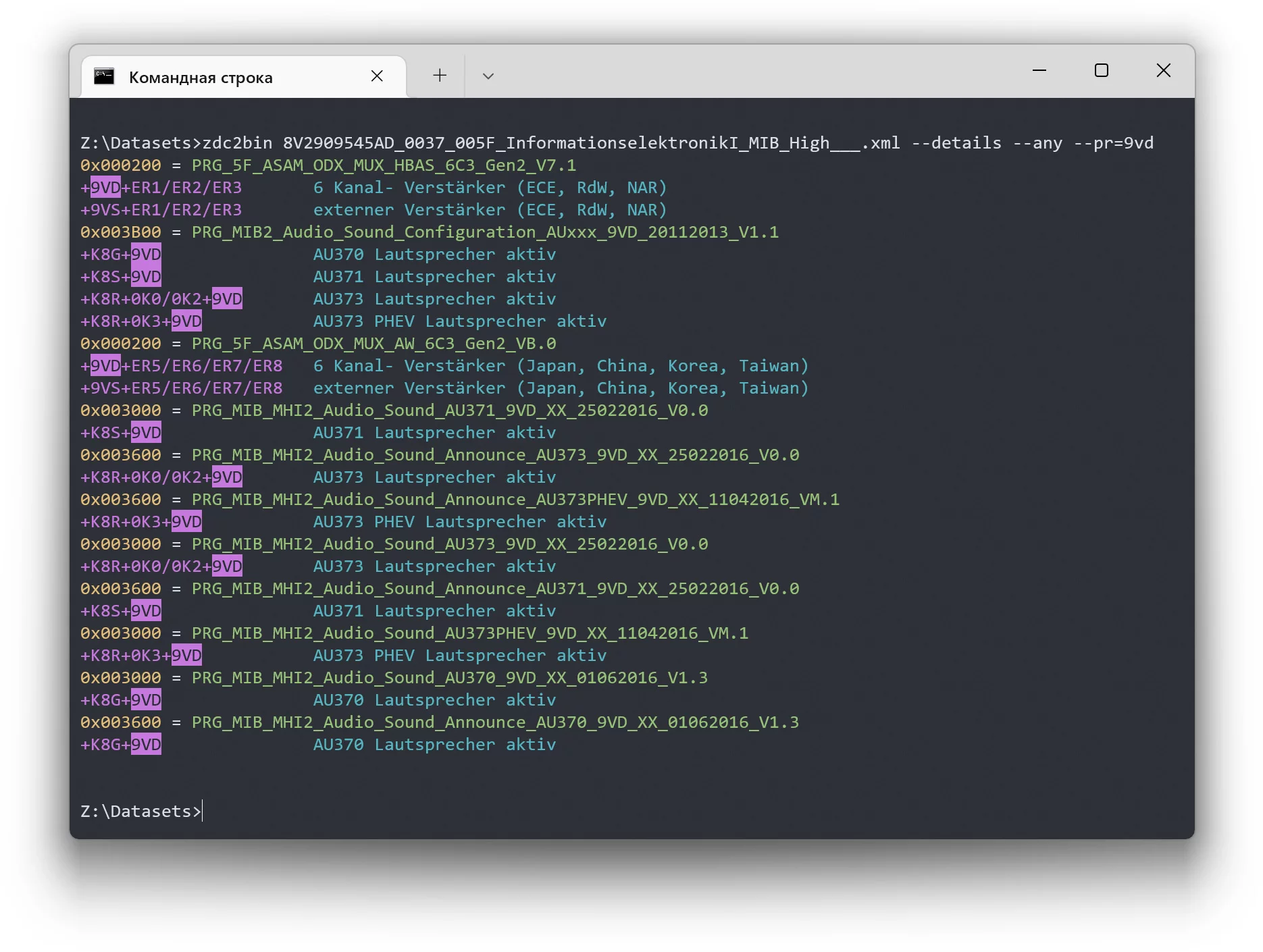I also did a quick look at MIB3 datasets, and they look very similar: 0x007204 is identical to MIB2’s 0x003B00, with UI controls, and 0x007201 — the same as 0x003000, with per-channel DSP filters.