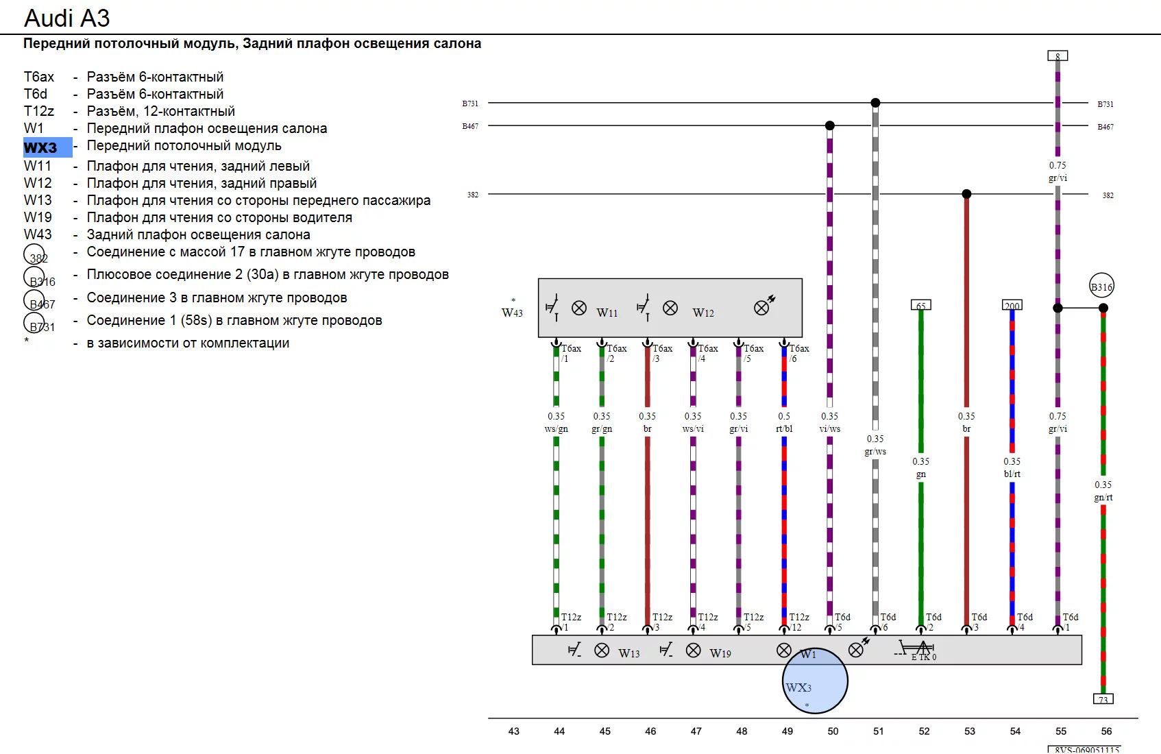 Надо проложить новый жгут между плафонами и перепиновать плоский разъем, входящий в большую люстру справа. На схеме это Т6d.