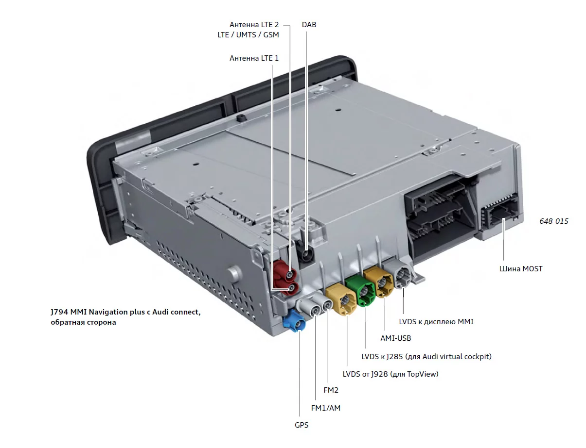 Момент, который меня интересовал: MIB2 физически лишился аналогового видео-входа, теперь только звук. Для отображения на экране сторонней картинки необходимо подключение штатного TV-тюнера (8V0 919 129 E, F, G), у него есть полноценный RCA вход. Пост с описанием этой цацки у Berryman. Тюнеры с кодом “8V0” ставятся и на Volkswagen, Skoda.