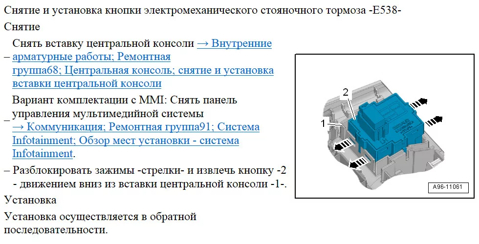 Необходима для замены шайбы/тачпада/джойстика и коробки в подлокотнике с новым USB-хабом (разъемы USB2+AUX). На старых консолях новый разъем USB1 рядом с прикуривателем надо врезать в пластик.