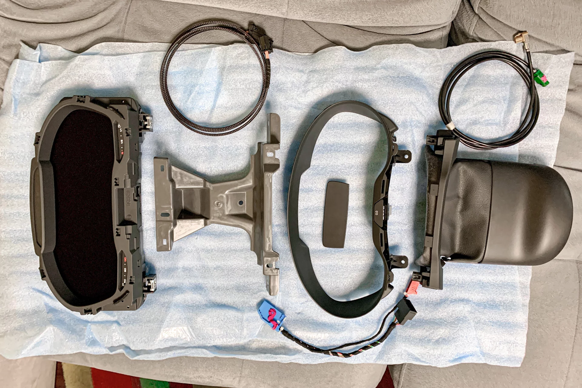Комплект проводки с Aлиeкспреcc ($50), включающий в себя: кабель LVDS, оптический кабель MOST, переходник между старым и новым разъемами кокпита, с ответвлением на кнопку 0.0