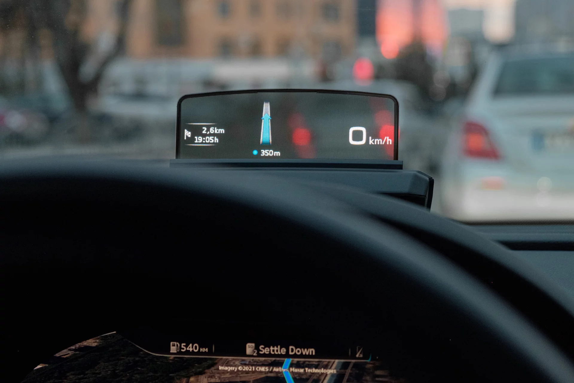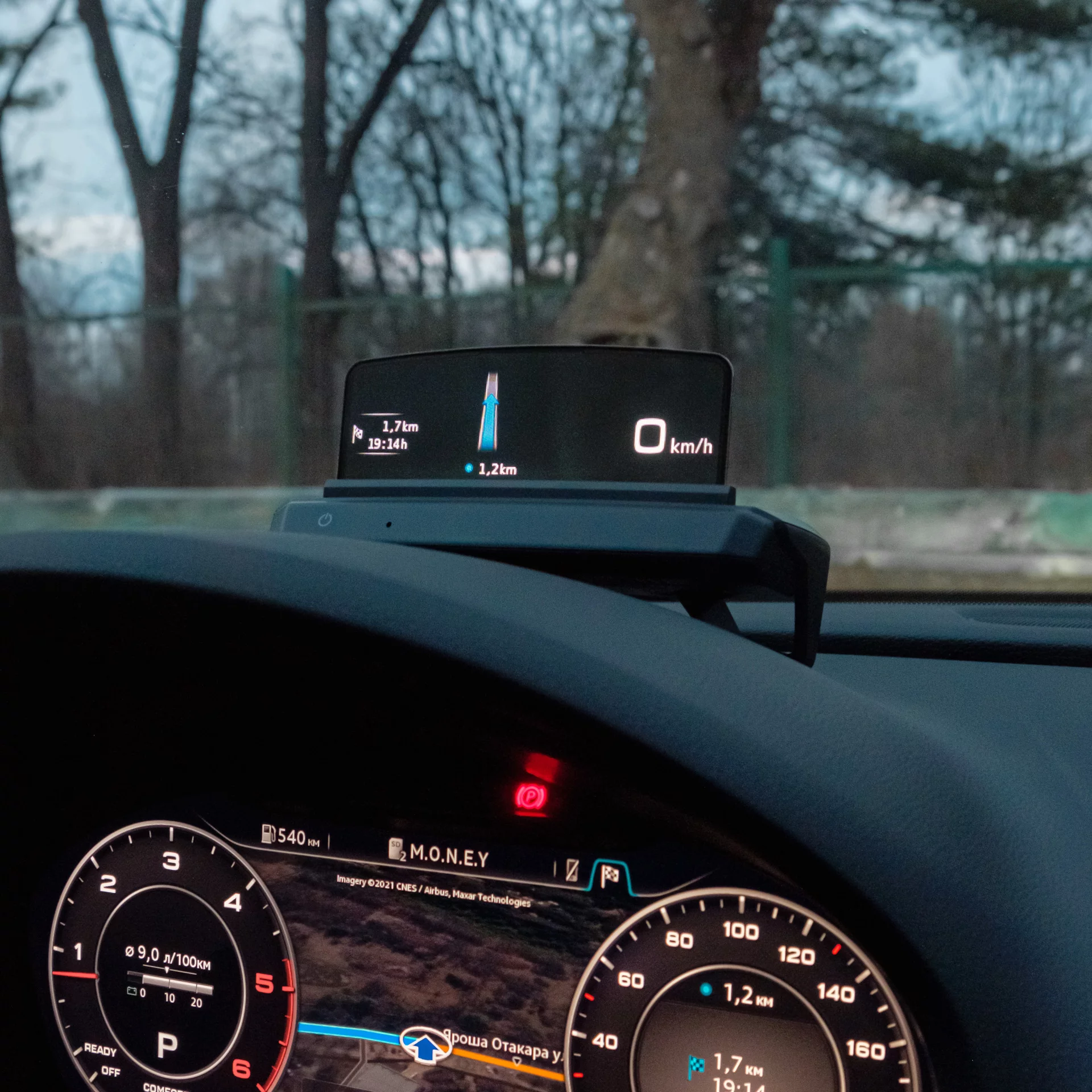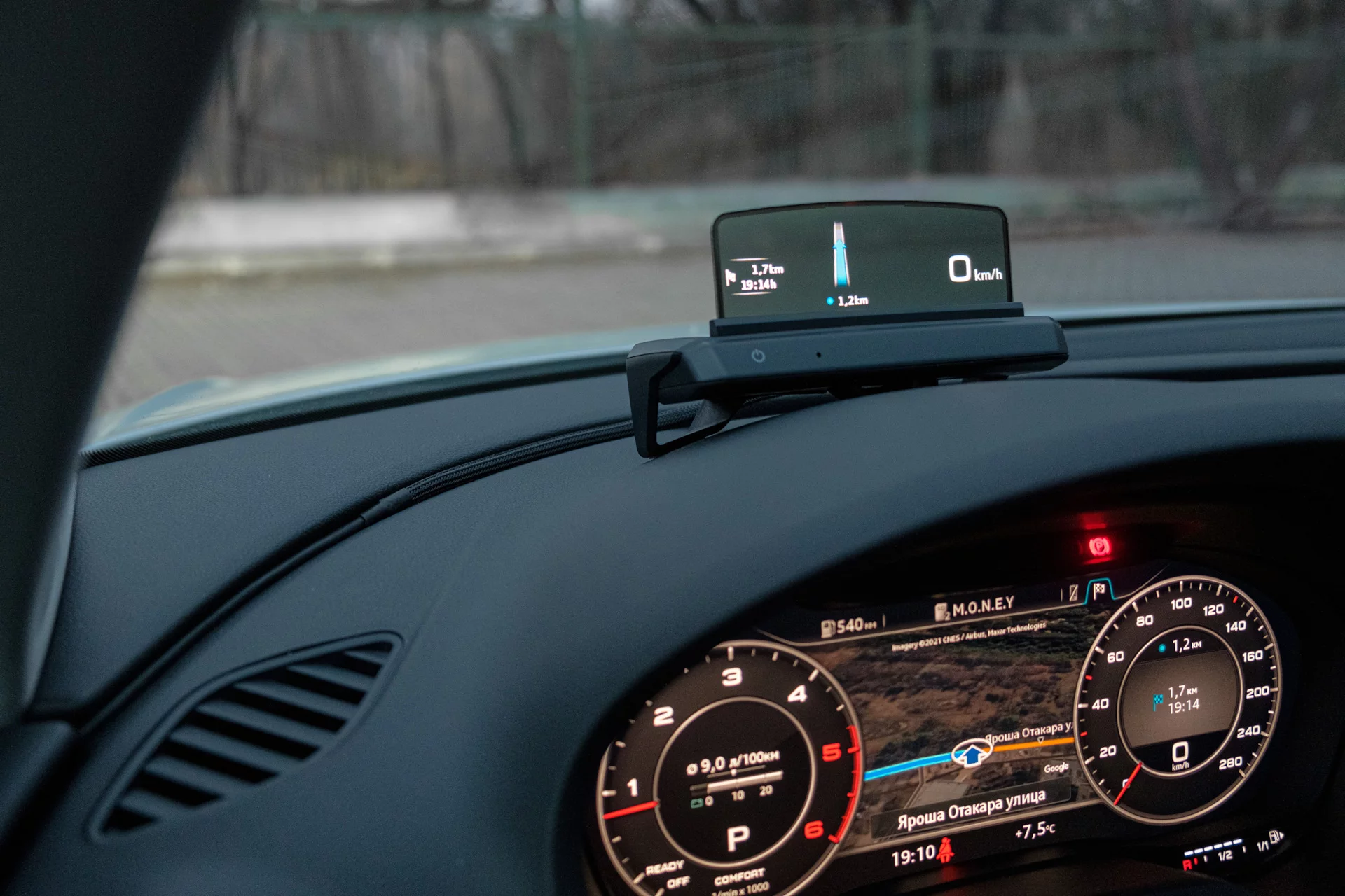 Функционально HUD полностью повторяет штатные проекторы в торпеде современных Q2 / A4 / Q5 машин: скорость, подсказки навигации и ассистентов адаптивного круиз-контроля, удержания полосы и распознавания знаков. Всего 5 функций. Не стоит ждать всю ту яркую фигню с графиками и оборотами, которую выводят страшными квадратными цифрами китайские HUD через OBD разъём. 90% времени вы видите только текущую скорость в правой части экрана (аналогично штатной проекции Audi). При отсутствии в машине навигации и ассистентов, ничего больше он и не покажет.