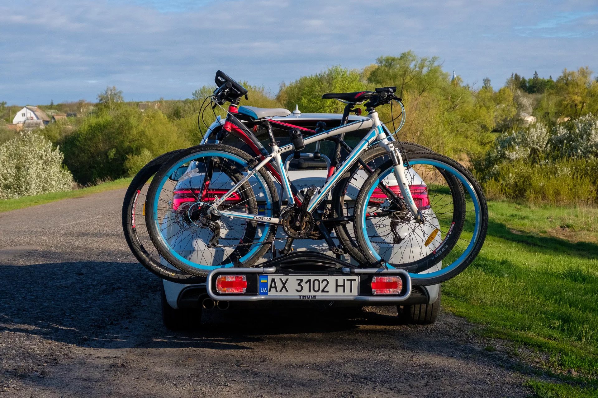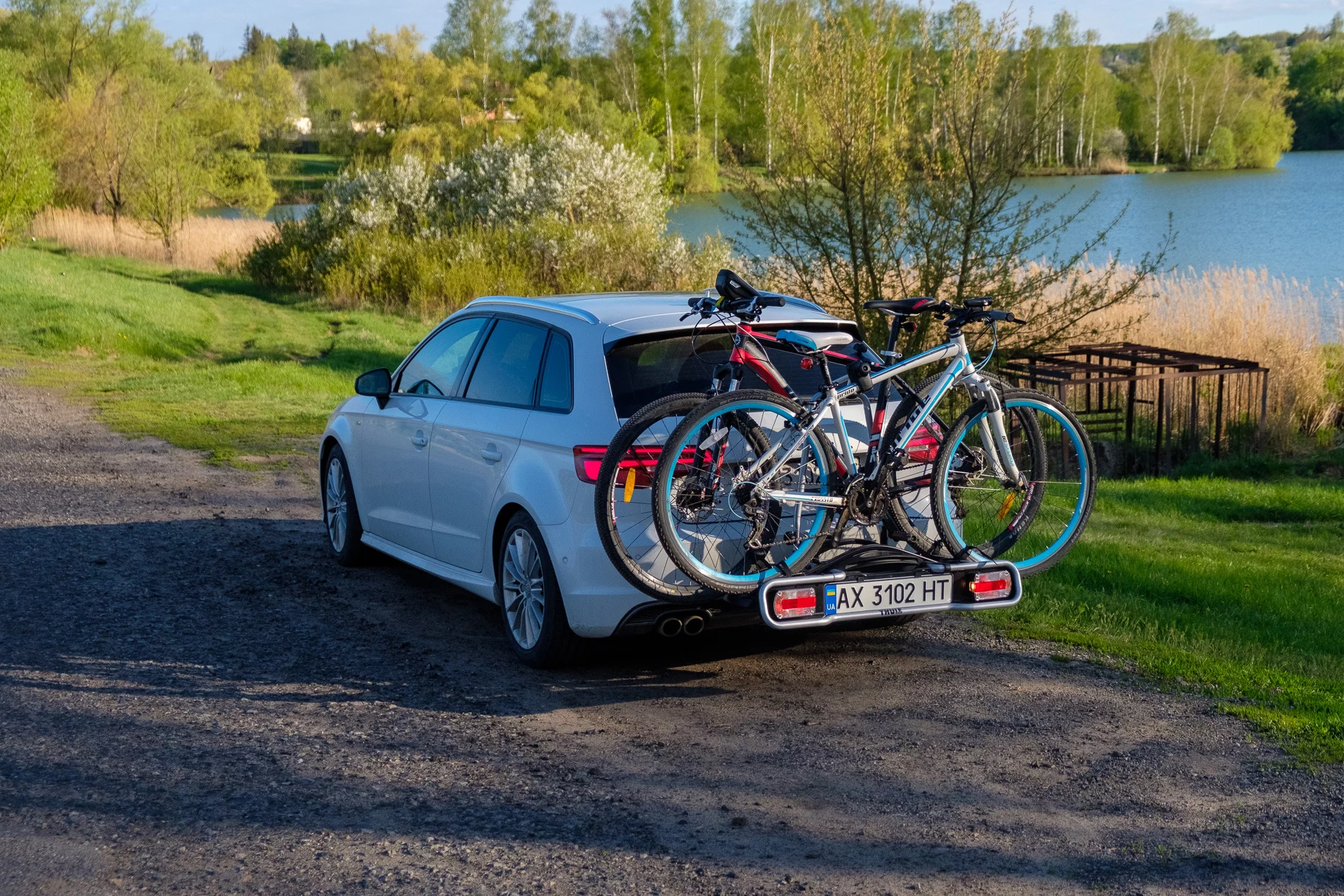 В первую поездку было страшновато, на неровностях платформа покачивается отдельно от машины. Для спокойствия и дополнительной фиксации велосипедов куплю еще туристических ремней с клипсами, может поменяю бакли на пластиковые.