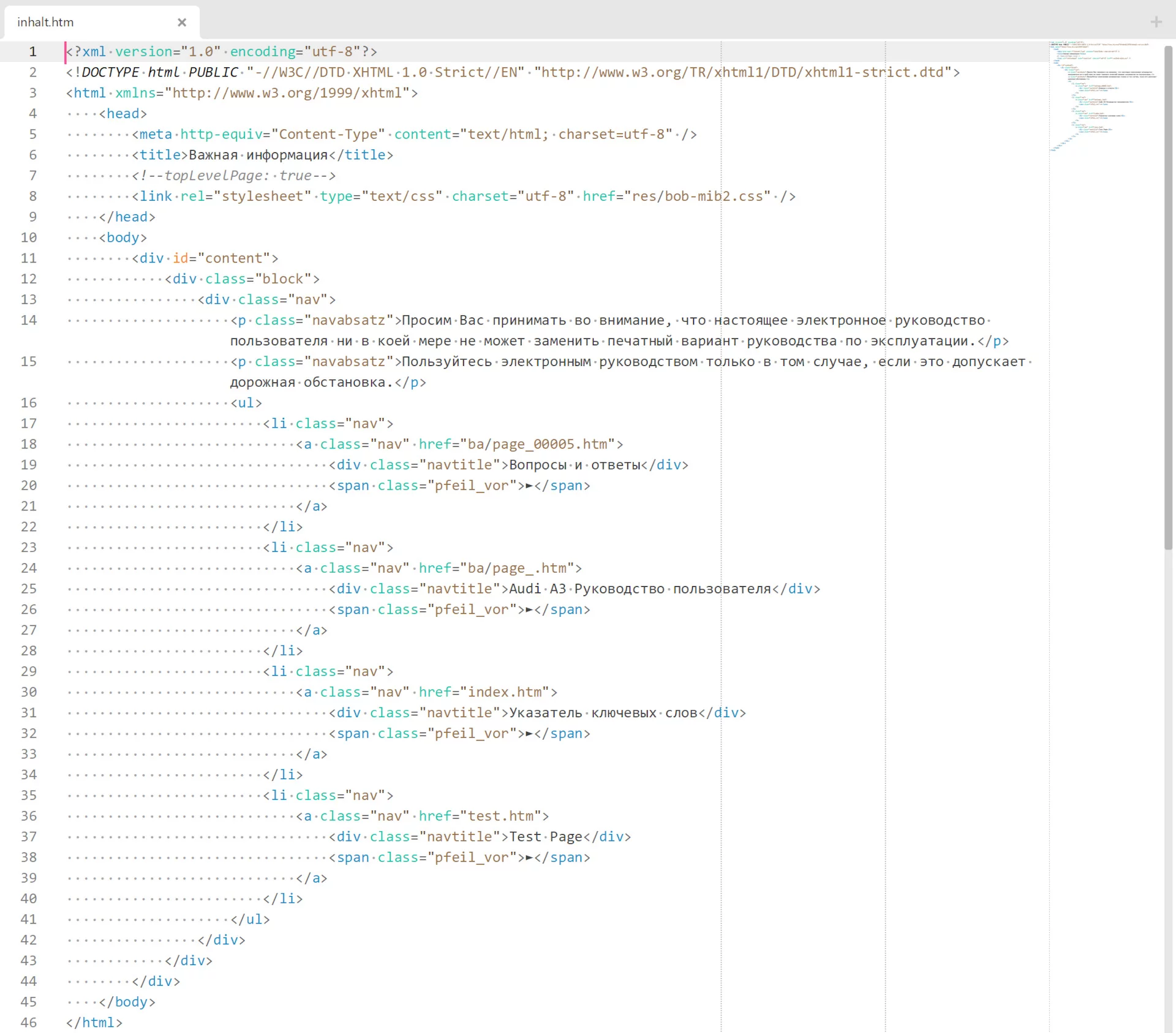 Что из себя представляют мануалы было понятно давно — это просто набор HTML-страниц с CSS стилями и небольшим количеством скриптов. Но редактировать их для MIB1 было не интересно — ГУ с собственным выходом в интернет были большой редкостью. А большинство MIB2 High имеют слот для SIM-карты и из этого можно (в теории) извлечь какую-нибудь выгоду. Тем более я далеко не первый, кому пришла в голову эта идея и в сети уже есть удачные подтверждения.